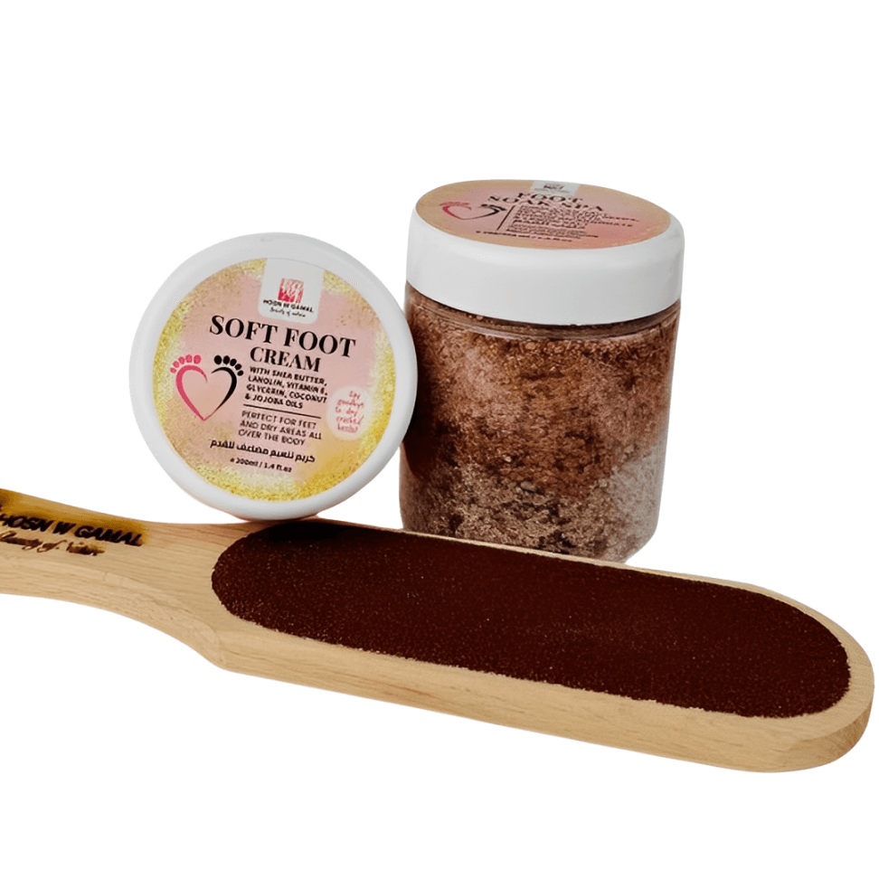 يعمل على تخفيف آلام القدمين ومنحهما البياض وعلاج التشققات،و يزيل الجلد الميت ويجرى الدورة الدموية